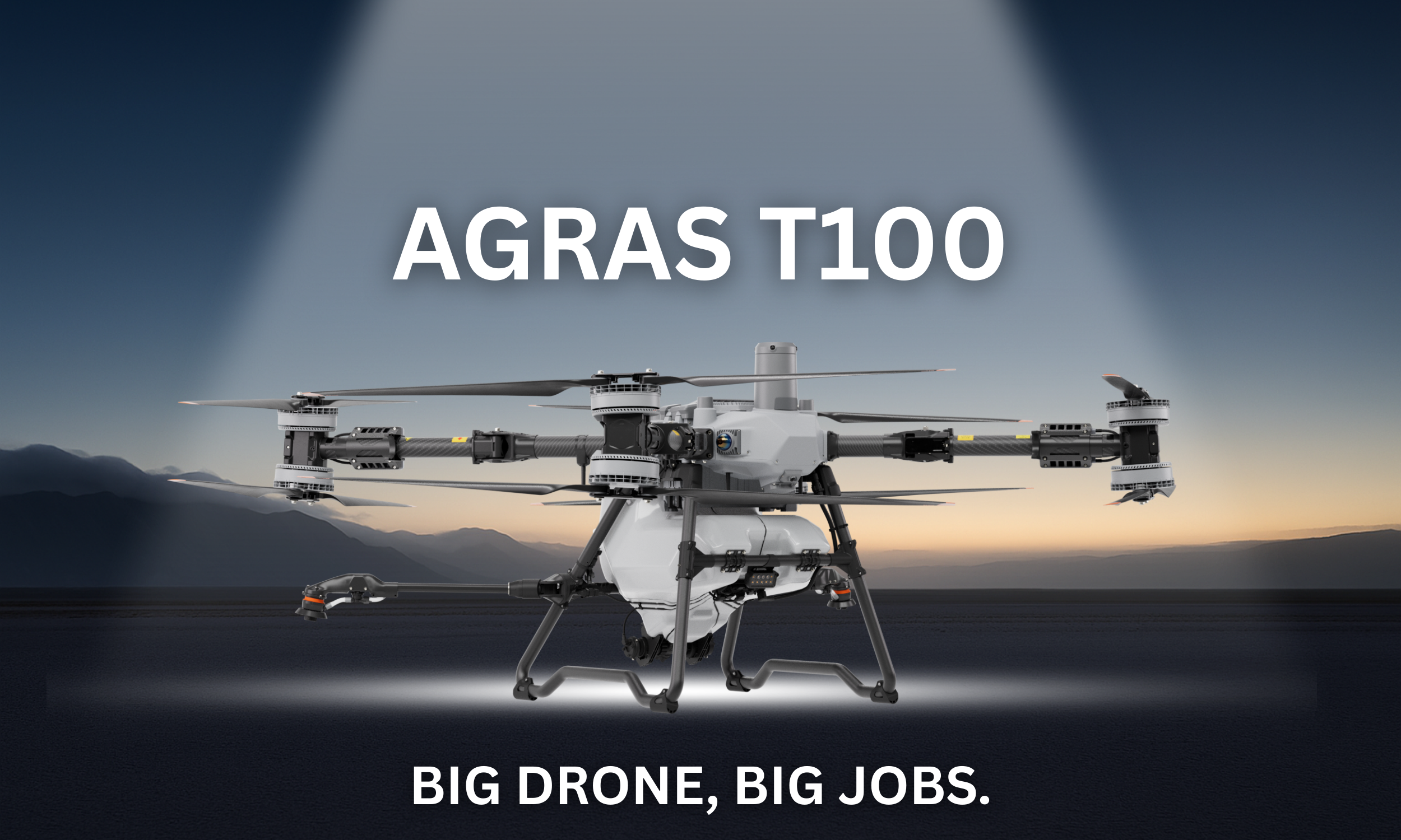 The DJI AGRAS T100 is a powerful, enterprise-level agricultural drone designed for large-scale spraying and spreading operations. It features a 100 L spray tank, a 150 L spreading tank, and supports payloads up to 100 kg, making it ideal for high-volume crop treatments. With advanced LiDAR, radar, and DJI’s Penta-Vision sensing system, it maintains precision and safety across varied terrain. The T100 delivers fast, efficient coverage with up to 20 m/s operating speed and ultra-fast charging capability. It’s suited for commercial farms looking to boost productivity, accuracy, and efficiency in 2025’s precision-agriculture landscape.